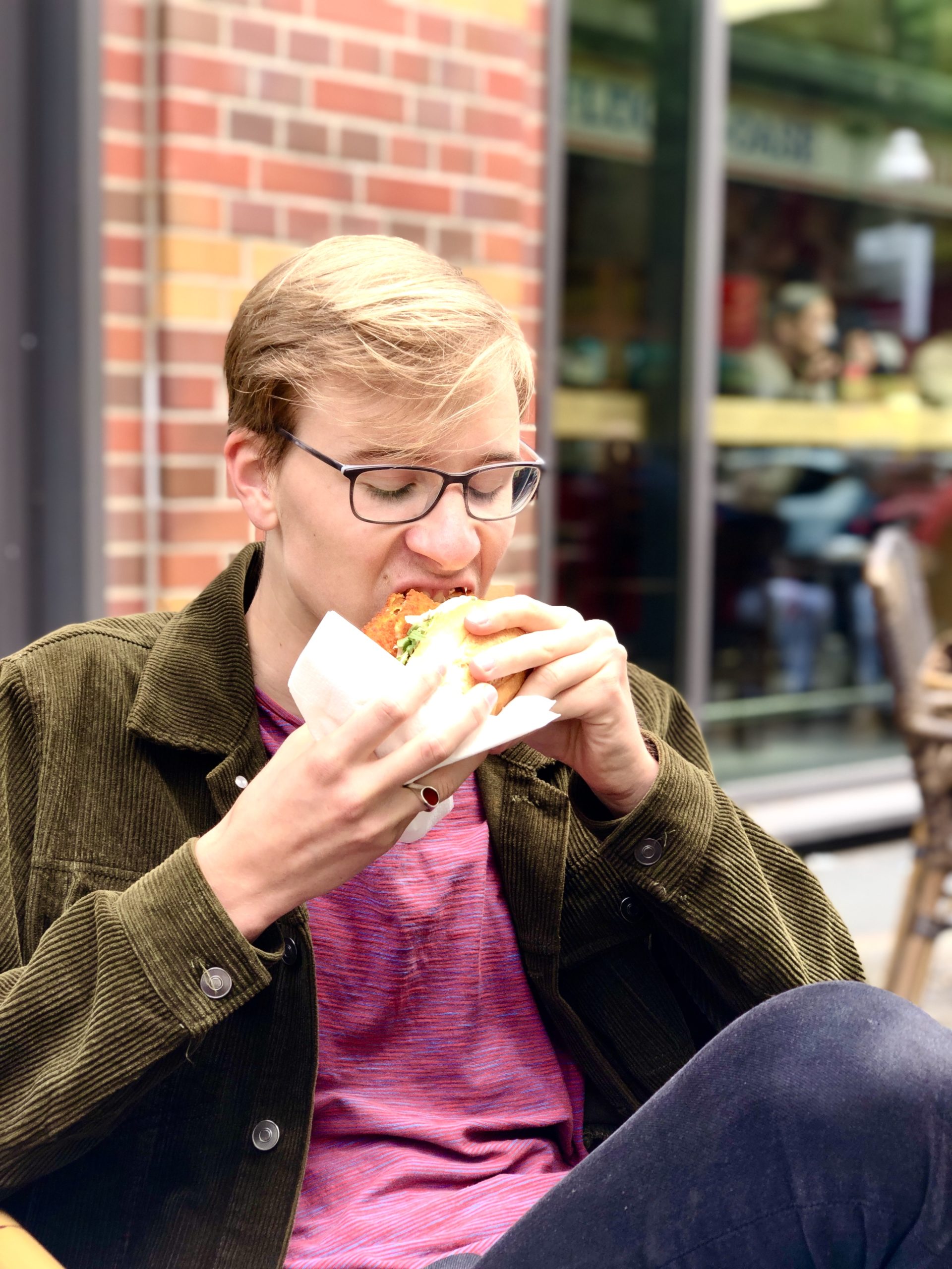 Wenn dir der liebliche Duft von Currywurst und Dönerfleisch in die Nase steigt. Das Zischen beim Öffnen einer eisgekühlten Club Mate das Blut in den Adern gefrieren lässt und du, wenn du einen Berliner, Kreppel oder Krapfen genießen willst, ironischerweise einen Pfannkuchen bestellen musst, dann weißt du: Du bist in Berlin. Du bist in der Marheineke-Markthalle.